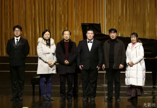 高翔宇是我系2018级音乐表演专业的员工。进校以来,他认真学习专业技能,在专业成长导师唐国矫的悉心指导下,从钢琴零基础到独自开展音乐会,实现了在专业道路上的精彩蜕变。音乐会中,高翔宇同学演奏了舒伯特《降E大调即兴曲》、柴可夫斯基《船歌》、肖邦《幻想即兴曲》等六首作品,熟练的演奏,优美的旋律赢得了现场观众的阵阵掌声。教师代表孙玉柱教授给予高度评价。随后,唐国矫老师从“静”“思”“韧”三个方面,总结了高翔宇学琴过程的特点,也为在座的同学们提供了参考。最后,钢琴教研室主任吴晓曦老师讲话,吴老师告诉同学们在学习艺术的道路上要坚持梦想,砥砺前行,同时希望有更多的同学走上音乐厅的舞台,大胆展示自己的专业技能。
