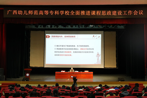 12月18日,我系音舞系毛敏老师应邀参加了广西幼儿师范高等专科公司“全面推进课程思政建设会议”。会上毛敏老师以“春风化雨 润物无声---幼师钢琴课程思政模式设计与实施”为题,面向全校500多位教职工进行了一场生动的专题讲座。