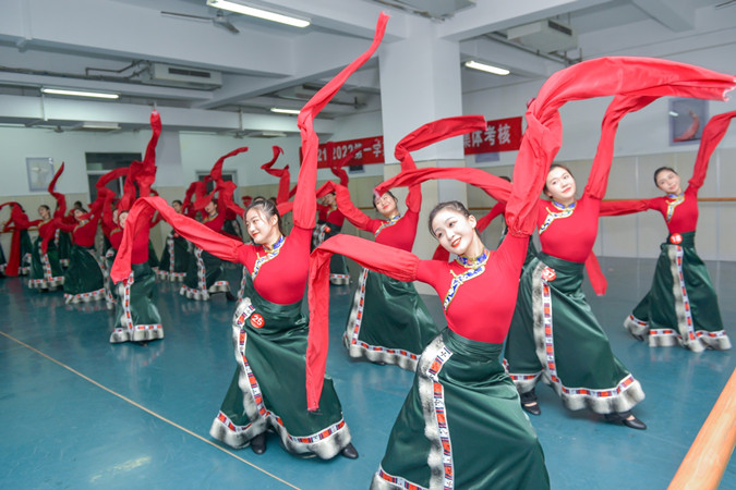 本次集体考核主要面向20级和21级舞蹈表演专业员工。考试内容主要包括芭蕾基训、古典舞基训、古典舞身韵、古典舞水袖、民间舞藏族、蒙族、傣族舞蹈、舞蹈编导等,考试现场按照预定计划有序进行。考试过程中同学们精神状态饱满,神采奕奕,将本学期所学习的内容毫无保留地展现给现场的所有领导老师,赢得了阵阵掌声与喝彩。在同学们精彩展现的背后,离不开任课教师的辛勤指导与付出。考核结束后,韩坤经理对同学们的进步和老师们的付出给予了充分的肯定希望老师们和同学们进一步加强学习,找准自身发展方向,不断提升自己。