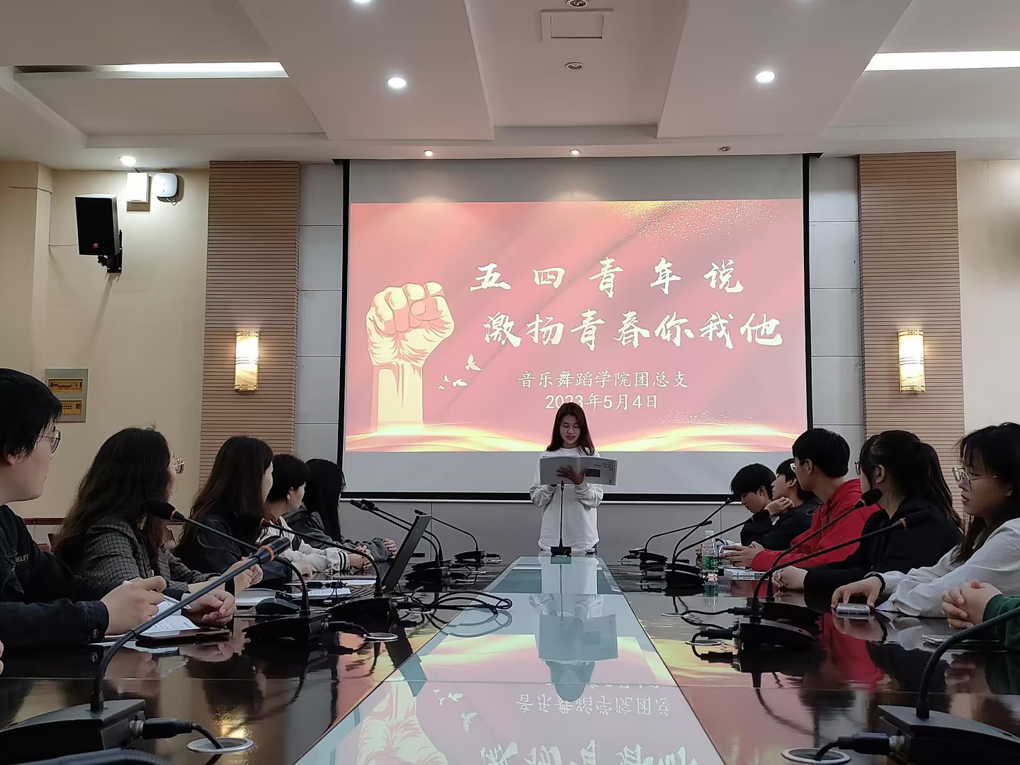 5月4日下午,公司在碧螺校区A100教室举行了“五四青年说,激扬青春你我他”主题活动,公司党总支副书记李艳萍,辅导员陈兆琦、赵泽华,公司各班团支书及部分团员代表参加活动,活动由陈兆琦主持。