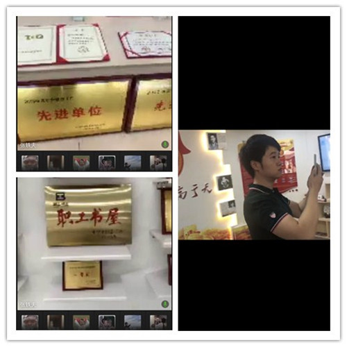 上午10:20,张轶夫老师来到邳州市烟草专卖局,通过企业微信直播功能,组织同学们线上参观,帮助同学们直观了解该单位企业文化的内涵、建设与发展。邳州市烟草专卖局办公室王女士为大家进行了全程讲解。王女士先后带大家线上参观了党员活动中心、职工书屋、党支部书记工作室、企业文化室、企业荣誉室等。从王女士的介绍中,大家了解到邳州市烟草专卖局以英雄王杰“两不怕” “三不停手”精神为企业文化核心精神,在王杰精神的引领下,一代代企业人不怕苦,不怕累,甘于奉献,为企业贡献力量。在该企业的职工书屋中,王女士介绍道:该书屋现藏有六千七百册的文献书籍和三千六百多部多媒体资料。学习是进步的阶梯,正是因为企业每位员工都能坚持学习,才使得该企业始终保持生机与活力,该书屋曾被评为全国优秀职工书屋。在党支部书记工作室中,“不忘初心,牢记使命”这八个鲜红的大字提醒着每一位员工要始终牢记初心与使命,不畏困难,砥砺前行。在企业文化室中,大家看到了多才多艺的基层员工们各项文娱活动的照片,王女士带大家观看了企业微视频“党员的一天”,了解了一名普通党员如何在平凡的岗位中发挥自己的模范带头作用。在企业的文化墙上,记录着企业员工志愿服务社会的瞬间,有看望孤寡老人的,有六一慰问幼儿园小朋友和特殊儿童的……在企业的荣誉室中,摆放了各种荣誉证书、奖杯和奖牌,记录着企业发展过程中的每一次成功与辉煌。