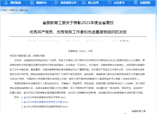 为充分发挥先进典型的示范引领作用,激励全省高校各级党组织和广大党员干部见贤思齐、奋发进取,近日,省委教育工委下发了《关于表彰2021年度全省高校优秀共产党员、优秀党务工作者和先进基层党组织的决定》,对南京航空航天大学潘时龙等50名共产党员、中国药科大学钱春华等50名党务工作者、南京大学环境公司党委等50个基层党组织予以表彰,在此次表彰中,音乐舞蹈系孙玉柱教授被评为全省高校“优秀党务工作者”。