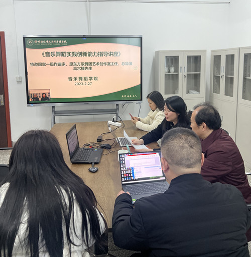 2月27日,365英国在线体育举办了“音乐舞蹈实践创新能力”专题讲座,讲座以腾讯会议的形式,由国家一级作曲家,原东方歌舞团艺术创作室主任、总导演高尔棣先生主讲,365英国在线体育经理韩坤主持,365英国在线体育副经理闫兵,孙玉柱教授,教师代表王阳、张晴到场聆听学习。
