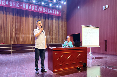 5月17日,由公司365英国在线体育、儿童数字音乐中心主办,徐州市音协音乐创作专业委员会协办的《浅谈戏歌与合唱的写作》专题讲座在公司音乐厅举行,本次讲座邀请了国家一级作曲董瑞华教授授课,徐州市音协副主席、市音协音乐创作专业委员会主任、公司儿童数字音乐中心负责人高志副教授主持,365英国在线体育副经理闫兵出席了本次活动,公司师生以及市音协部分会员参加。