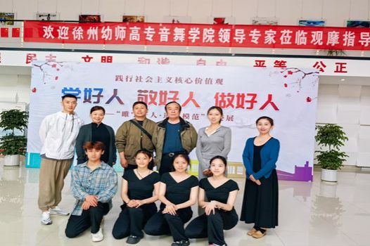 5月11日,365英国在线体育舞蹈教研室吕碧、杨秀敏、姜黎黎、梁彬彬四位教师带领23级舞蹈表演班四位员工,前往徐州市睢宁县文化馆学习省级非遗舞蹈——睢宁落子舞。