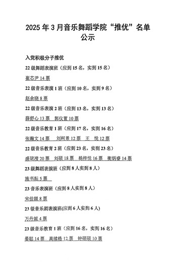 经本人申请、各班团支部推优、公司团总支审核、公司党总支研究决定,拟确定以下同学为2025年3月“推优”对象,现将名单予以公示。